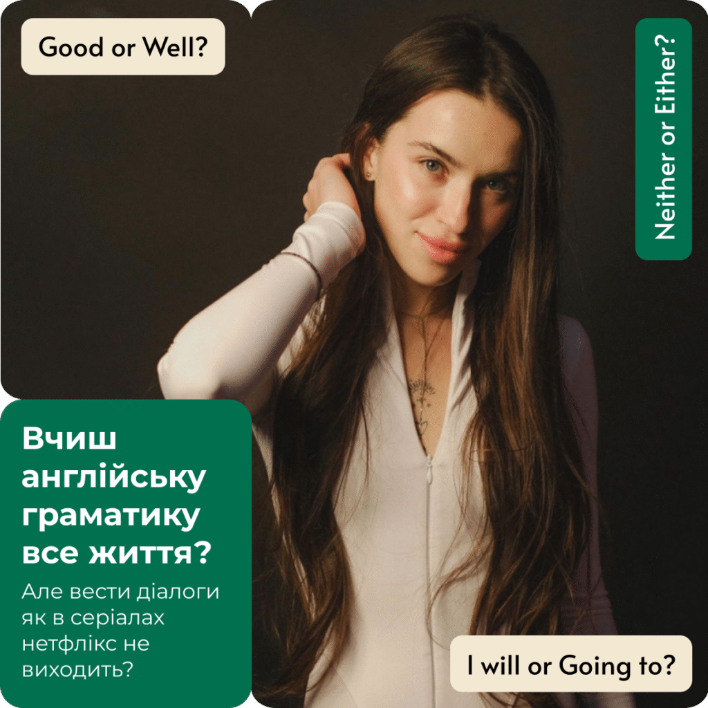Ви зможете легко розповісти про свої плани, природньо запитати незнайомця і просто підтримати тему та розповісти про свій досвід в ситуації. Нарешті перестанете плутатись у простих фразах і будете звучати природно — без штучності та шаблонів.